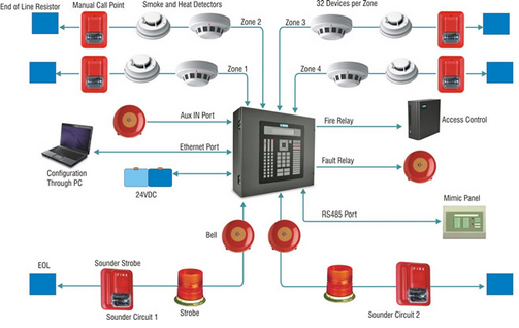 There are many types of fire alarm systems each suited to different building types and applications. A Fire Alarm System can vary dramatically in both price and complexity, from a single panel with a detector and sounder in a small commercial property to an addressable Fire Alarm System in a multi-occupancy building.